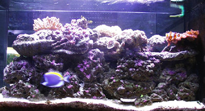 Nel febbraio del 2001 decisi finalmente di riprovarci con il marino, dopo una delusione di qualche anno fa’. Riallestii l’ acquario che avevo (100x40x50) tolsi il filtro interno, tolsi la plafoniera in termoformato alzai l’acquario di altri 15 centimentri costruendo un coperchio in plexiglass e sughero inserii 2 tiranti alla base e uno nella parte centrale