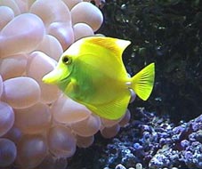 Zebrasoma flavescens – Plerogyra sinuosa e Cromis viridis