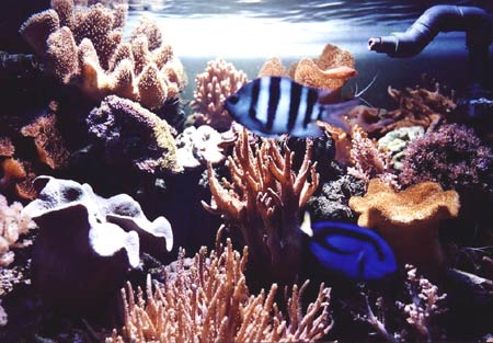1 DuplaLux LI da 150 watt con lampadina 10000° Aqualine ( 8 ore ) e 2 DuplaLux Coral da 9 watt ( 12 ore ).