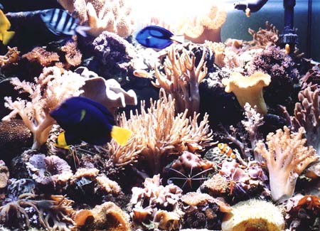 1 Lo vulpinis, 1 Zebrasoma Xanthurum, 1 Paracanthurus Hepatus, 1 Centropyge Bicolor, 1 Pseudocheilinus Hexataenia, 1 Halichoeres Chrysurus, 3 Anthias, 1 Pseudochromis Paccagnellae, 2 Amphiprion Ocellaris, 1 Abudefduf Saxatilis.