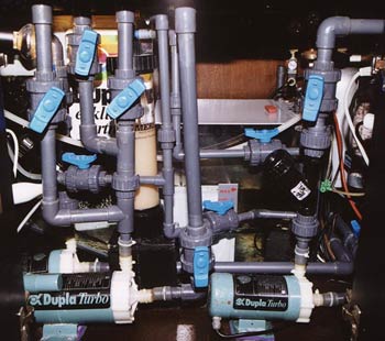 Filtro percolatore Nolmann con BioKaskade e filtro a foglie .Filtro a letto fluido Merlin con pompa Maxi-jet da 1000 l/h. Filtro Denitratore Deltec a 3 colonne.