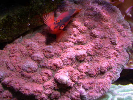 L’illuminazione è affidata a 3 plafoniere con una lampada hqi da 250w 10000K, due T5 attiniche e due T5 14000K, il tutto regolato in maniera completamente automatica da computer per simulare alba-tramonto e le fasi lunari. Io fornisco otto ore di hqi e dodici ore di T5. Il movimento dell’acqua è affidato a due pompe tunze turbelle da 3000 lt/h, mentre la pompa di mandata è una Eheim 1060 da 2200 lt/h. Le pompe Tunze sono collegate ad un controller per la simulazione delle maree e la calma notturna.