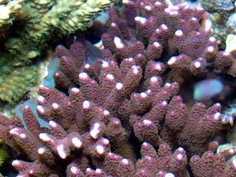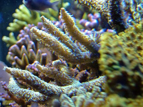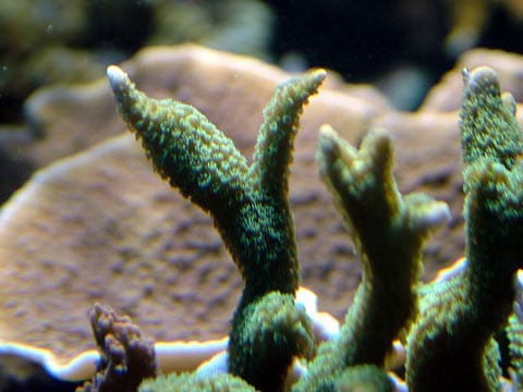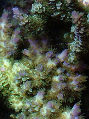 Nonostante i buoni propositi dopo un po’ comincio a variare sul tema: al contrario di quanto prescritto dal metodo zeovit, infatti, ho sempre continuato ad alimentare i coralli abbondantemente. Ora ho ridotto un po’ e utilizzo sia gli amminoacidi zeovit, 4 gocce al giorno, sia i prodotti della linea Aqua:C1, 1 volta alla settimana, e C7, 1 volta ogni 2/3 settimane, alternati con golden pearls sciolte in 20 ml di Marin de Luxe.