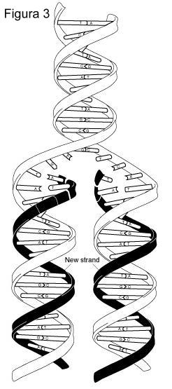 La figura 3 mostra come un singolo filamento di DNA si apra sdoppiandosi.