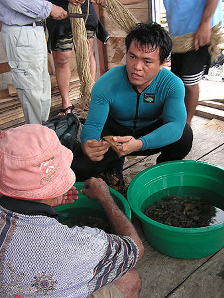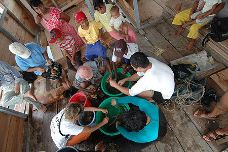 Il nostro team di scienziati illlustra agli abitanti del luogo le tecniche di raccolta.