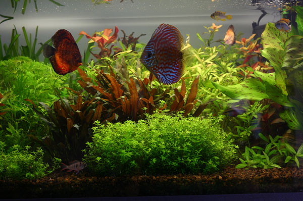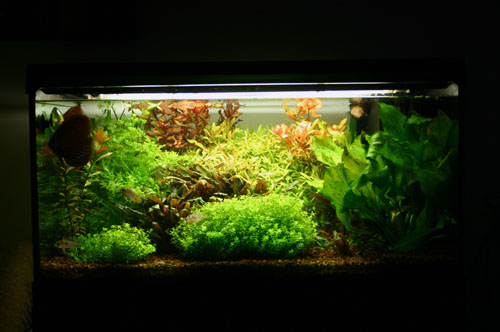 Al ritorno lo spettacolo era desolante. Tutti i pesci morti. Le piante marcite. Insomma l’acquario era diventato un pentolone di “brodo primordiale” maleodorante ed infetto. Ho provveduto a ripulire tutto, ho sifonato il fondo, cambiato i materiali filtranti. Riempita la vasca d’acqua ho fatto girare l’acquario a vuoto per circa un mese con frequenti cambi d’acqua per poi riarredarlo come è ora.