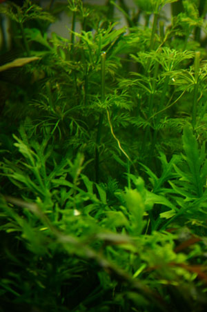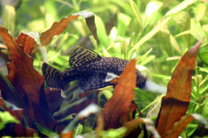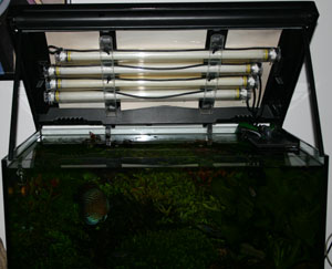 E’ una vasca commerciale ELOS 80 prima. Le misure della vasca sono 80x40x40 ovvero 160 litri lordi di acqua. Il fondo è costituito da sabbia alofana naturale (Elos terra). L’illuminazione è affidata a 4 tubi Dennerle. La vasca “gira” da tre anni anche se l’estate scorsa (2003) ha subito un tracollo a causa del caldo.