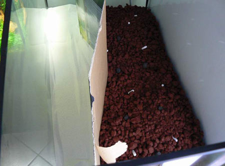 Allestimento L’ acquario è stato allestito il 13 marzo 2007, e il fondo è composto da lapillo vulcanico ricoperto da semplice Akadama Hard Quality di granulometria fine, tranne per una fascia di circa 10 cm, non piantumata, per la quale ho usato sabbia bianca finissima. Per completare la parte decorativa ho posizionato delle Dragon Stone.