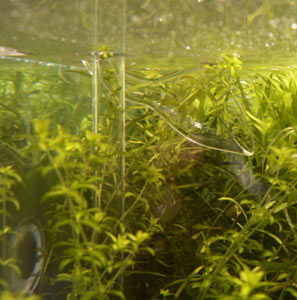 Manutenzione Cerco di essere molto preciso nel dedicarmi alla gestione dell’ acquario, fertilizzo una volta al giorno durante la pausa pranzo e giornalmente: elimino eventuali foglie morte, ripristino l’ acqua evaporata, pulisco i vetri. Poto le piante una o due volta alla settimana, a seconda delle necessità, evitando di eccedere. L’ esperienza mi ha insegnato che è melgio dedicarsi sistematicamente al ridimensionamento delle piante invece che lasciare che queste crescano troppo per poi effettuare delle potature eccessive. Valori dell’acqua All’ ultima misurazione avevo i seguenti valori: