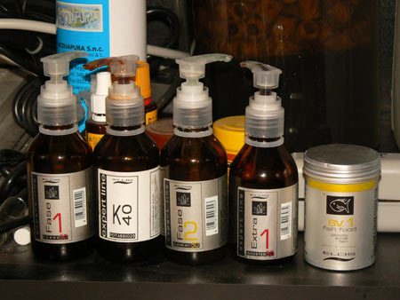 Alimentazione I pesci sono alimentati con un prodotto granulare Elos SV1 somministrato 2 volte al giorno, e con del surgelato somministrato due volte alla settimana.