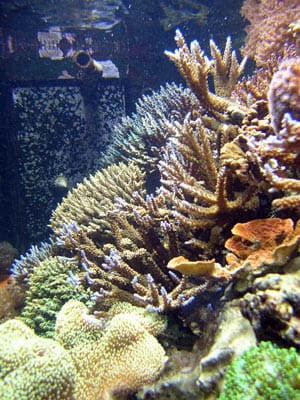 Vi è poi la presenza costante, tranne che per alcuni periodi abbastanza brevi, di un filtro con un litro di zeolite della korallen zucht, che cambio ogni due mesi circa. Ho provato più volte a toglierla ma ogni volta dopo un po’ di tempo i coralli tendevano ad incupirsi, perdendo quel qualcosa in più che gli dona la zeolite.