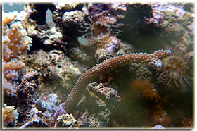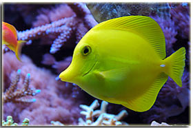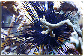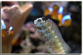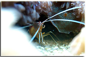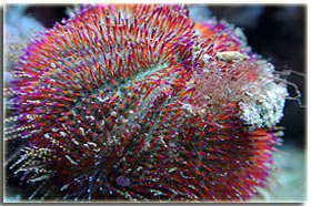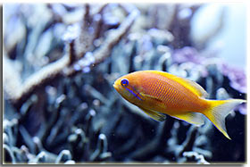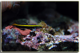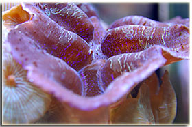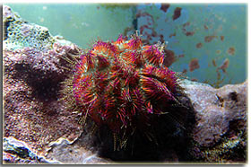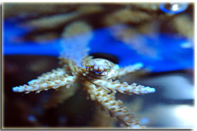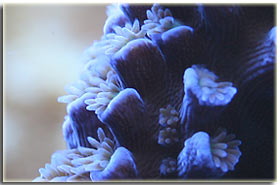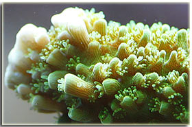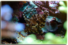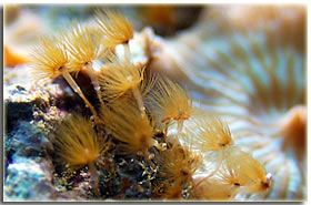 E’ solo un peccato che non sia semplice da fotografare; Zebrasoma flavescens: inserito alla fine del 2003, è l’ultimo grosso inserimento del mio acquario, ed è antecedente alla conoscenza di acquaportal, e più in generale della conoscenza dalla comunità acquariofila marina su internet. Bellissimo nella sua maestosità, con un giallo perfetto e senza ombre, è una nota di colore all’interno dell’acquario. Peccato che negli ultimi mesi la sua convivenza con Berto sia diventata un po’ complicata; Pseudoanthias squamipinnis Inseriti solo di recente, per dare un po’ di colore tendente al rosso, si sono dimostrati vivaci ed hanno iniziato a mangiare sin da subito, sono attualmente due femmine ed una che ha quasi completato il cambio sesso da femmina a maschio Acreichthys tomentosus Questo simpatico pesciotto, di cui purtroppo non ho nessuna foto migliore di questa, è semplicemente un pesce favoloso… si nutre di aiptasie infatti, ed ultimamente si sta pure mangiando la xenia… quindi è il pesce perfetto in tutti i sensi. Peccato solo che nella famiglia dei pesci lima esistano pesci molto simili a lui che invece di cibarsi di aiptasie si mangiano praticamente tutti i polipi dei coralli. Altri pesci che sono passati dal mio acquario… Qua ci sarebbe da sbizzarrirsi… ho avuto diversi altri pesci, tra cui uno splendido Synchiropus splendidus alias pesce mandarino, che è spirato alla soglia dei 3 anni in vasca, dopo aver ricevuto un pizzico o aver mangiato qualcosa di profondamente sbagliato, presentava infatti una bolla enorme da una parte del ventre Di Salarias fasciatus ne ho avute ben 3, una la trovai in terra la mattina, una venne mangiata dalla Ofiura Crassa, ed un’altra morì con il ventre gonfio dopo circa un anno dall’inserimento Poi seguono un Chelmon rostratus ucciso presumibilmente dal cianuro ed una coppia di Gobiosoma evelynae ottimi divoratori di parassiti ma dalla vita purtroppo molto corta Invertebrati: Gli invertebrati mi piacciono assai… peccato solo che non posso purtroppo inserire tutti i gamberetti che vorrei nella mia vasca, se avete letto sopra la mia calloplesiops va matta per i Lysmata wurdemanni, e così mi sono sempre dovuto limitare agli amboinensis, sebbene anche loro abbiano un bel timore reverenziale verso questo bellissimo pesce Ricci varii… un Diadema setosum, è un caterpillar, ma contribuisce a tenere sotto controllo la popolazione di xenia e di myrionema, diversi Salmacis bicolor, che sebbene lenti si nutrono di Myrionema amboinensis ed in passato anche diversi Mespilia globulus, inoltre paguri, qua un Calcinus elegans (zampe blu) e una coppia non ben identificata di Calcinus sp. e poi diverse trochus, turbo etc di cui non ho foto Gli SPS: small-polyped stony (da Borneman)