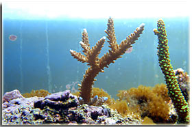 Aprile 2005: a sinistra Acropora microphtalma ed a destra Acropora nobilis. L’inizio… |