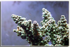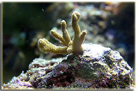 Montipora digitata verde, appena innestata in una roccia, ci rimarrà a lungo |