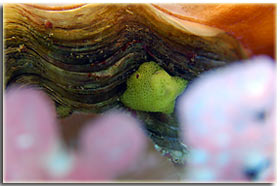 Spugne nate spontaneamente, qua sul mantello della Tridacna |