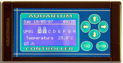 Il riscaldatore è da 300w.  Con Aquatronica gestisco praticamente ogni cosa in acquario, dagli innumerevoli timer, al livello di sump, acquario e rabbocco, misuro pH, redox, densità ed ovviamente temperatura. Più tutta un’altra serie di funzioni che sarà presto oggetto di un articolo separato.