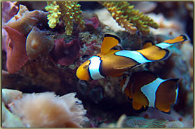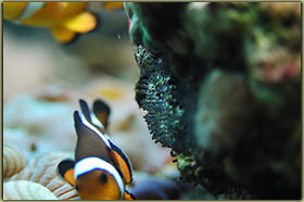 Amphiprion ocellaris: sono una coppia che depongono ad intervalli fissi di circa 15 giorni. Uno dei due ? con me dall’allestimento dell’acquario, cioè da febbraio 2002, e quindi ha compiuto da poco i 5 anni. L’altro, il maschio, è con me solo dal gennaio del 2003, quindi ha “solo” 4 anni.
