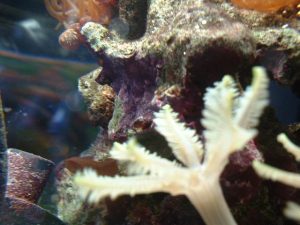 Gli animali si adattano subito ed è notevole la loro crescita, come si vede dalle foto le alghe calcaree rosse hanno incrostato tutto quello che si può incostrare compreso la pompa e il filo elettrico. Questi due elementi ormai fanno parte dell’ arredamento.
