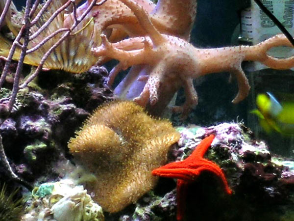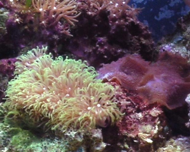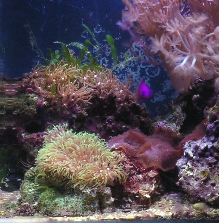 La vasca ha raggiunto i primi valori positivi dopo due mesi,a partire dai quali, ho inserito il primo corallo molle,una sinularia,e due lumache turbo. Il mio piccolo mondo di barriera presentava tuttavia altri ospiti tra cui spicca un classico riccio,tutt’oggi vivente e molto attivo.Dopo tale periodo i valori si sono mantenuti stabili e ho cominciato con l’inserimento di altri animali con una logica che definisco di “effetto scomparsa delle rocce”. Devo dire che ho parzialmente realizzato il mio obiettivo.