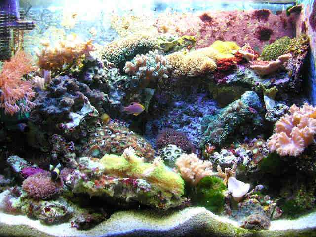 Allestimento: circa 20 kg di rocce vive e 3cm di sabbia corallina media a costituire il fondo