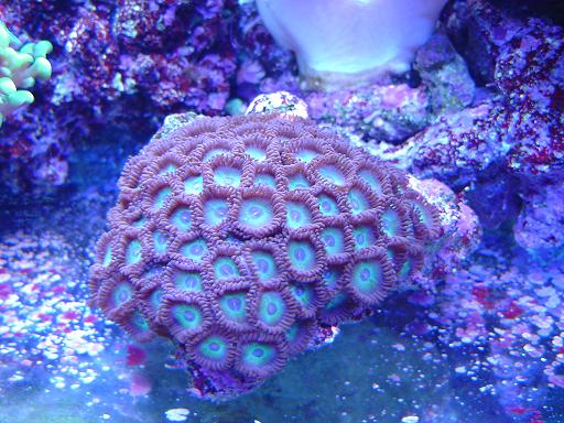 colonia di zoanthus verde-viola