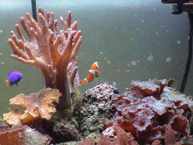 L’illuminazione sembra che sia buona visto la crescita degli invertebrati e la proliferazione delle alghe calcaree viola che stanno colonizzando tutto, stanno ricoprendo le pompe, i vetri e la scatola dello schiumatolo di un bel colore viola.