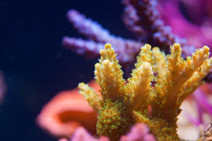 La vasca è dedicata principalmente a coralli SPS, purtroppo non è sempre facile indicare con precisione la specie esatta dei coralli, di seguito elenco quelli di cui sono certo. Acropora , 24 specie tra cui: valida, loisettae, nobilis, millepora, tenuis, prostrata, grandis, granulosa, austera, formosa, humilis, gemmifera, gomezi, hyacinthus, plumosa. Coralli LPS: Caulastrea furcata, Duncanopsammia axifuga, Euphyllia ancora e divisa, Alveopora gigas, Goniopora, Pavona cactus, Acanthastrea, Symphyllia. Tridacne : 1 squamosa, 1 maxima, 2 crocea, 1 hippopus. Gamberi : 3 Lysmata amboinensis, 7 lysmata wurdemanni, 1 Stenopus hispidus, 2 Lysmata debelius.