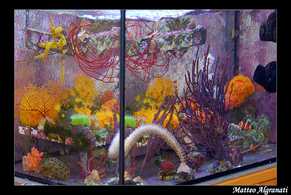 In funzione da 2 anni… ormai in rifacimento. Le foto sono della vasca quando era ancora in forma. A breve la rifarò con rocciata e animali diversi. questa decisione è stata presa a causa degli alti inquinanti dovuti a una vaschetta affiancata alla principale, dedicata ad animali non zooxantellati. Sistema di Filtraggio La Vasca è gestita con sistema berlinese puro… schiumatoio e rocce vive. L’anno scorso x circa 6 mesi ho adottato il sistema zeovit ma per mia incapacità, ho preferito tornare al berlinese classico. sistema più tranquillo e meno rischioso. La sump ha dimensioni 60 x 50 x 45… se dovessi rifarla la rifarei con 10 cm in meno di altezza…..molto più comoda per lavorarci e probabilmente la rifarei anche più grande. Il filtraggio meccanico è assicurato da uno schiumatoio BK 250 interno che mi permette di esagerare un pochino con gli alimenti.