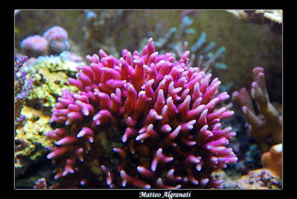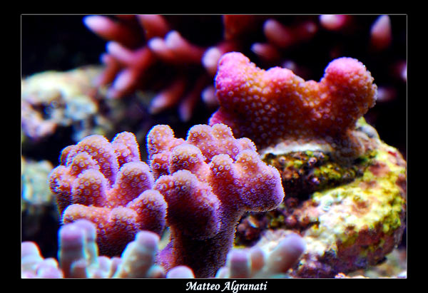 Coralli Nella vasca ci sono presenti circa 50-60 coralli diversi, una decina di LPS … e ovviamente 1 Malpe Sarco. 4 lysmata amboinensis 4 lysmata wurdemanni di mia produzione 1 gambero arlecchino migliaia di asterine migliaia di ofiure 4 vermocani da competizione 5 tridacne ormai di dimensioni notevoli.