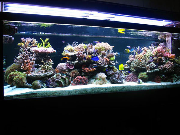 La vasca come detto ha il DSB, dopo vari esperimenti fatti ho optato per la sabbia di mare viva, la scelta è caduta su una granulometria di 800-1200micron con altezza del fondo 10-12cm. L’acqua utilizzata è di mare tagliata con acqua osmotica con una densità di 1027 [per avere più stabile il magnesio] le rocce utilizzate sono per il 50% rocce secche piatte di origine indonesiane tenute per 2 anni in un refugium sotto la vecchia vasca di 1700lt il resto è stato scelto tra 400kg di rocce della stessa.