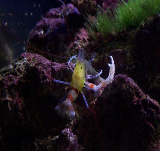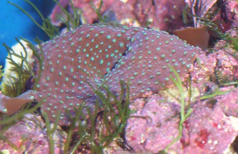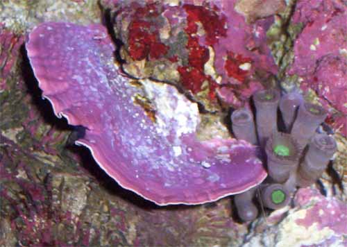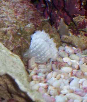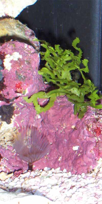 Gli ospiti “involontari”: rientrano in questa categoria tutti quegli animali non introdotti volontariamente da me, ma scaturiti dalle rocce vive: si tratta di stelle marine ( Asterina gibbosa e un altro tipo, di colore verde) di piccola taglia, lumache, anch’esse di piccola taglia, Mysis, Copepodi, Anfipodi, un granchio (subito eliminato essendo un granchio peloso), un piccolo anemone, spirografi, vermi di vari tipi e dimensione (Nematodi, ma soprattutto Policheti di cui ho assistito anche alla riproduzione) e infine su tutti sono da citare apparizioni in massa di piccole meduse che ciclicamente sono nate nella mia vasca. Queste ultime, misuranti pochi millimetri di diametro e di colore marrone chiaro, si limitavano a vagare pulsando trascinate dalla corrente; dopo tre giorni al massimo da ogni “schiusa” sono sempre sparite nel nulla (ho provato a spegnere anche la pompa nella speranza di prolungarne la vita, senza però ottenere risultati positivi). Oltre agli animali anche diverse alghe spontanee hanno popolato la mia vasca, fra le quali Caulerpa racemosa var. uvifera , Valonia ventricosa e altre (fra cui molte alghe rosse) che non sono riuscito a classificare. Nessuna di queste, eccetto la Caulerpa racemosa, si è dimostrata particolarmente infestante.