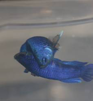* Normalmente i pesci dimostrano una certa dose di aggressività, ma si tratta di un comportamento normale: è comunque necessario osservarli con attenzione in questa fase che rimane una delle più delicate dell’accoppiamento. Capita di sovente che le pinne della femmina vengano morsicate dal maschio, ma si tratta sempre di parte del “rituale”; nel caso in cui però la femmina manifesti chiaramente disagio), chiari problemi nel nuoto o abbia delle vere e proprie ferite sul corpo è necessario dividere i due riproduttori! Se invece tutto procederà al meglio il maschio lascerà avvicinare la femmina fin sotto il nido e lì i due riproduttori si accoppieranno abbracciandosi letteralmente: è il momento magico che lascia tutti gli allevatori di Betta incantati. C’è qualche cosa d’indescrivibile nei loro movimenti e nell’incredibile intesa che raggiungono in questo momento. Per questo non spiegherò cosa succede e vi lascerò osservare con stupore.