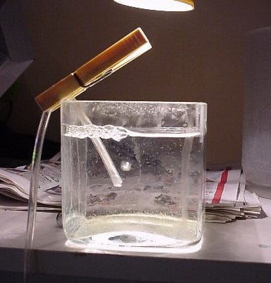 5. Aerazione continua. Qualunque sia il contenitore, occorre introdurvi un tubicino rigido collegato all’aeratore per mantenere le cisti in movimento.