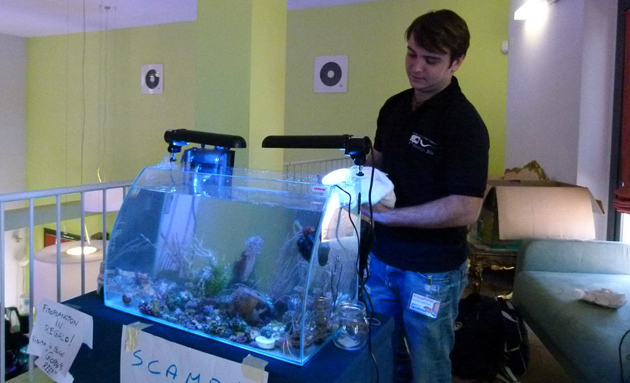 La redazione di AP ringrazia Daniele Zemignani per il reportage dell’evento e soprattutto per aver pazientemente registrato tutte le conferenze. Potete seguire Daniele sul suo blog al seguente indirizzo o sulla sua pagina Facebook “BLU” raggiugibile qui . L’uno ed il due giugno 2013 si e’ svolto a Livorno il Congresso di acquariofilia marina Goccia Blu e il Raduno Nazionale Marino di AcquaPortal, la manifestazione organizzata dall’associazione Goccia blu toscana ha condensato in un giorno e mezzo dei notevoli contenuti formativi e una interessante esposizione di aziende specializzate nel settore. All’ingresso dell’evento, gli organizzatori segnavano meticolosamente l’ingresso di ogni visitatore registrato al forum di AcquaPortal. Alla fine si conteranno oltre 260 registrati, circa 120 in più dell’edizione del 2011 (nel 2012 il raduno si tenne a Cerea). Un dato, questo, che conferma l’ottima riuscita dell’evento, che a fine manifestazione registrerà più di 500 visitatori.