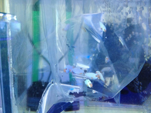 Gli ambienti dedicati al vivo ospitavano vari operatori del settore, suddivisi in una stanza per sps ed una stanza per pesci di allevamento ed LPS.