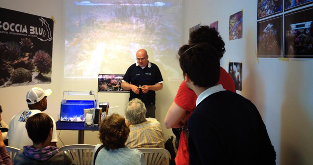 Particolare risalto all’evento e’ da attribuire alle conferenze, la prima giornata e’ stata dedicata a tre conferenze, nella prima Leonardo Aguiari ha esposto come mantenere e riprodurre i synchiropus Picturatus: Tony Vargas come secondo relatore ha esposto come impostare un acquario di barriera di successo, unica nota dolente la traduzione della conferenza, comprensibilissima per gli anglofoni ma meno per noi italiani. La giornata si e’ conclusa con L’intervento del Dott. Massimo Marpurgo, curatore del museo di scienze naturali di Bolzano. La conferenza aveva come argomento principale gli invertebrati infestanti nella vasche di barriera ed i loro antagonisti naturali ed ha compreso la descrizione della vasca del museo ed il sistema di gestione: Nella Giornata di Domenica si sono svolti workshop sulla taleazione dei coralli, tenuta da Roberto Tommasini e sulla foratura di un acquario, tenuta da Geppy Apuleo della LGMaquari. In contemporanea si sono tenute altre 3 conferenze che possiamo vedere di seguito. Secondo intervento a cura di Roberto Ferri, titolare di Planctotech ha esposto l’argomento “storia della barriera corallina e dei suoi abitanti” come partenza della conferenza per poi sviluppare le condizioni ottimali di allevamento in funzione del tipo di animali che si intende allevare in acquario: Terzo ed ultimo intervento di Tony Vargas con l’esposizione di un nutrito carnet di Vasche di livello internazionale con descrizione della tecnica e un sommario dei labridi allevabili in vasche reef: Conferenza sui labridi: Alla fine di questa terza conferenza c’e’ stato il tempo di socializzare e far merenda con le squisitezze portate da tutta Italia dagli amici dell’associazione. Ultima, ma non meno importante, la lotteria che ha assegnato graditi omaggi a coloro che hanno acquistato nelle due giornate i biglietti per partecipare all’estrazione. Articolo scritto da Zemignani Daniele , amministratore del blog: http://blureef.blogspot.it/ |