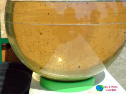 Il chironomus rosso deve sapere di frutti di bosco oserei dire, e il suo colore è rosso; diffidate quindi se sentite puzza di fogna e il colore è grigio marcescente. Arrivati a questo punto sarebbe preferibile reincartare il tutto e tornare dal negoziante per farsi sostituire il blister di congelati, o meglio ancora a quel punto, cambiare negoziante, perché dovrebbe essere lui in primis a controllare lo stato in cui gli arrivano tali prodotti e non rivenderli se qualcosa è andato storto. Avevate mai pensato che nutrire dei pesci potesse essere così avventuroso? Un’ultima cosa: a scongelamento avvenuto sciacquate il tutto e versatelo in un passino da tè, poiché l’acqua contenuta nei cubetti è fortemente inquinante per il microcosmo acquario, quindi meglio evitare. Per quanto riguarda il cibo vivo ci sono innumerevoli organismi che possono venirci utili allo scopo, tanti quanti sono stati gli acquariofili di inizio secolo, quando ancora non erano stati inventati mangimi di produzione industriale. Non a caso la daphnia è il simbolo di una nota industria fondata da Ulrich Baensch, cui si deve, appunto, la nascita degli alimenti per pesci d’acquario. Daphnie, artemie, larve di zanzara sono appunto tra le più facili e diffuse colture che l’acquariofilo medio possa oggi avviare; chi ha più spazio ed esperienza potrà sbizzarrirsi anche con infusori, fitoplancton, parameci, drosofile, camole della farina, anguillule dell’aceto e quant’altro sia a misura di bocca per i nostri pesci, stando attenti però a non esagerare in grassi somministrando sconsideratamente organismi che ne sono ricchi, quali sono, ad esempio, tubifex e lombrichi. Dove? Già, è importante anche questo! Quante volte abbiamo visto morire d’inedia un pesce e non ce ne siamo accorti? Caspita! E lui era lì insieme agli altri a sentire quando si sollevava il coperchio, per attendere qualcosa, che galleggiasse un minimo, per essere poi trangugiato. Ma lui arrivava sempre tardi e morì. Questo succede a pesci poco idrodinamici allevati assieme a comunità di squali; e per “squalo” intendo semplicemente “un corpo immerso in un fluido che non riceve (come Archimede disse), ma sembra addirittura imprimere al fluido una forza pari a quella che il fluido stesso rilascerà nei confronti dei suoi movimenti”. Sto elucubrando? Pensate al solito Orifiamma messo nel solito acquarietto con i soliti quattro pesci rossi comuni vinti al luna-park, e capirete a cosa mi stia riferendo. Il poveretto rimarrà sempre digiuno a meno che non lo si imbocchi.