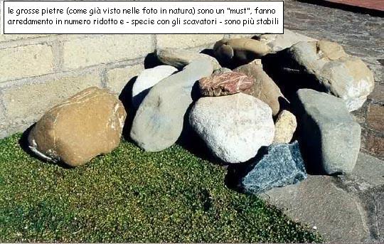 La vasca da 750 litri:I cambi d’acquaI cambi d’acqua sono la vita (la “nuova linfa”,) di ogni vasca non importa quanto la stessa sia sofisticata tecnologicamente, nella vasca che sto descrivendo dopo una fase iniziale di estrema attenzione necessaria per capire la reazione del “sistema acquario” ho raggiunto un soddisfacente equilibrio (tre necessità dei pesci e mia fatica) attestandomi sulla sostituzione di 180 litri (netti) ogni 15 giorni. Il volume rimosso sale a 210 litri – e oltre – in caso di intervalli più lunghi. Il generoso dimensionamento dei filtri (vedi sopra) mi ha permesso – in condizioni di forza maggiore – di eccedere i limiti sopra menzionati; fermo restando che è una prassi che sconsiglio fortemente ho avuto – se non altro – la conferma che il set-up (e le dimensione/potenza dei filtri installati) era corretto. In quei rari casi sono arrivato a cambiare (a fronte di una capienza netta di circa 600 litri) ben 400 litri in una unica soluzione facendomi forte (per evitare almeno lo “shock termico”) della presenza di un miscelatore – a servizio del tubo “di mandata” – collegato all’impianto idrico di casa. L’arredamentoArgomento, come noto a tutti ciclidofili coinvolti nell’allevamento dei pesci della Rift Valley, a due facce: da un lato i materiali usati sono estremamente rustici limitandosi a ghiaia/sabbia e rocce/sassi, dall’altro la loro disposizione/foggia/dimensione (al fine di assicurare una vita “di qualità” agli ospiti) è di estrema importanza. A tal riguardo rimando alla “territorializzazione della vasca” discussa in precedenza. Aggiungo che l’uso di materiali “cavi” (come ad esempio i foratini) consente di realizzare strutture (che poi sarà meglio occultare …) anche significative con buon risparmio di peso ed offrendo eventuale rifugio ad esemplari giovani, femmine e piccoli che venissero rilasciati in vasca, discorso analogo (con ulteriore enfasi sul risparmio peso/necessità di “occultare”) riguarda i tubi in PVC.