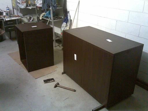 Non resta altro che accessoriare i mobili con delle maniglie ed effettuare un paio di fori sul pannello posteriore per far passare eventuali cavi e soprattutto i tubi dei due scarichi Xaqua che verranno utilizzato sull’acquario…..ma questa è un altra storia 😉