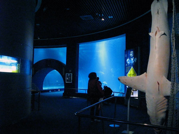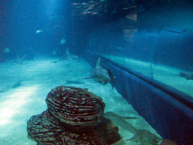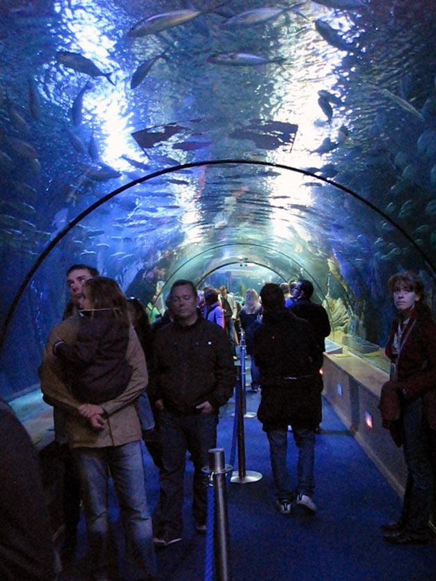 Lasciandoci alle spalle il primo ambiente che, nonostante le mie basse aspettative non me lo aspettavo deludente fino a questo punto, si imbocca il lungo tunnel di 70 metri in acrilico all’interno di una lunga vasca che rappresenta idealmente l’unione tra la costa americana e quella europea, nella quale è ospitata la fauna pelagica oceanica della fascia temperata, fatta esclusione dei grossi predatori che si trovano più avanti.
