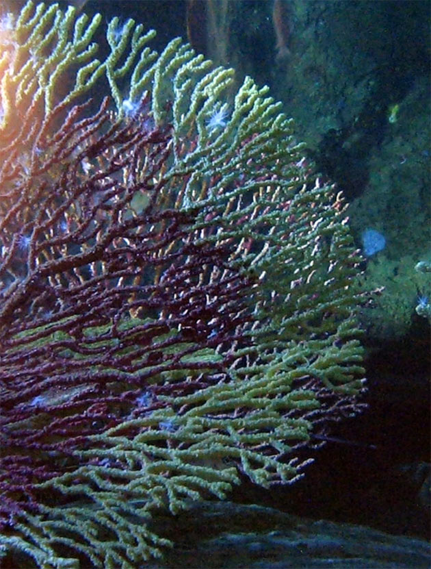 Non ho verificato se pure la posidonia fosse in plastica , ma per certo, come si può ben vedere dalla foto, le gorgonie sono talmente finte da risultare imbarazzanti.