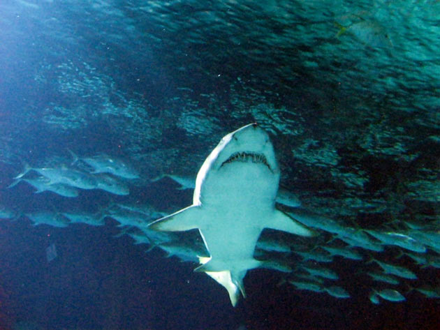 Il tunnel consente di osservare davvero da vicino e da angolazioni inusuali i grossi squali toro coi denti sempre esposti, quasi ad affermare continuamente la loro pericolosità.