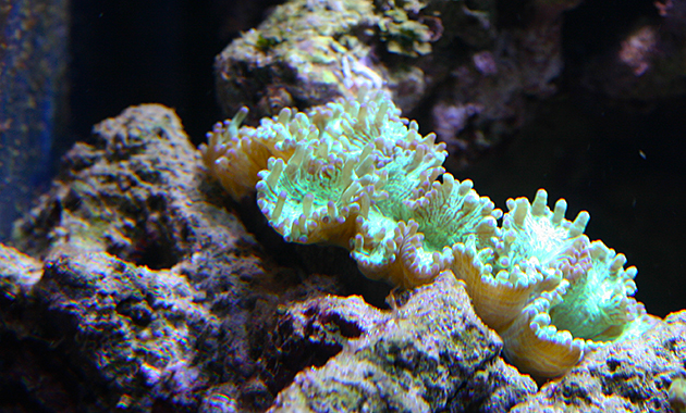 Catalaphyllia in acquario con iniziale accorciamento dei tentacoli. (foto a cura di: Ricca).