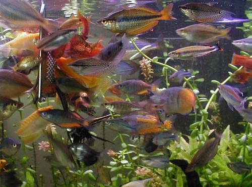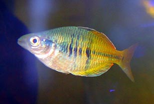 Alimentazione I rainbowfish sono pesci abituati a variare molto la propria alimentazione in natura, sfruttando qualunque possibiltà capiti. Il normale mangime a fiocchi è sufficiente per ottenere una buona crescita degli individui, ma variare l’alimentazione è consigliabile per favorire la riproduzione e la colorazione. Io somministro cozze congelate e parzialmente spettezzate ai miei pesci, oltre ai gamberetti per tartarughe. Se si può somministrare cibo vivo come larve di zanzara o chironomus i rainbowfish ne traggono giovamento, ma in ogni caso anche i cubetti congelati vengono consumati con avidità, come anche il cuore di bue e le zucchine lesse. L’importante come al solito è non eccedere con le dosi, visto che tutto ciò che si deposita sul fondo non viene ricercato dai rainbowfish che si nutrono solo in superficie e a metà dell’acquario.