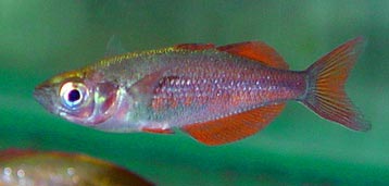 Dopo i primi giorni gli avannotti accettano le artemie saline appena sgusciate e dal momento che imparano a predare questi minuscoli crostacei il problema dell´alimentazione diventa tutto più semplice. Sarà sufficiente fare cambi parziali d´acqua affinchè il marcire del cibo non consumato non comprometta il nostro lavoro. Col passare dei giorni dobbiamo integrare con altri tipi di cibo per una più sana alimentazione e una rapida crescita. Ho detto rapida crescita impropriamente, infatti i Ranbowfishs sono relativamente lenti nella crescita. In genere occorreranno diversi mesi se tutto va bene per avere esemplari adulti, ma ne vale la pena. |