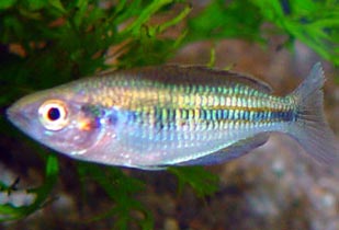 Alimentazione I rainbowfish sono pesci abituati a variare molto la propria alimentazione in natura, sfruttando qualunque possibiltà capiti. Il normale mangime a fiocchi è sufficiente per ottenere una buona crescita degli individui, ma variare l’alimentazione è consigliabile per favorire la riproduzione e la colorazione. Io somministro cozze congelate e parzialmente spettezzate ai miei pesci, oltre ai gamberetti per tartarughe. Se si può somministrare cibo vivo come larve di zanzara o chironomus i rainbowfish ne traggono giovamento, ma in ogni caso anche i cubetti congelati vengono consumati con avidità, come anche il cuore di bue e le zucchine lesse. L’importante come al solito è non eccedere con le dosi, visto che tutto ciò che si deposita sul fondo non viene ricercato dai rainbowfish che si nutrono solo in superficie e a metà dell’acquario.