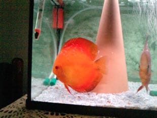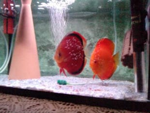La preoccupazione maggiore erano le dimensioni, considerato che il mio maschio era un red da 12 cm e la mia femmina una red rose di 11.5 cm… Qui iniziò il mio studio del comportamento e la meravigliosa avventura con la mia coppia di discus.I protagonisti: