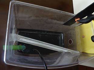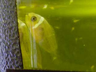 Le uova da prima quasi trasparenti sul rosaceo con il passare dei giorni si scuriscono fino a notare evidentemente gli occhi e dopo 9 giorni a 25.5 gradi avviene la schiusa con l’aiuto dei genitori il tutto sempre alla sera dopo lo spegnimento delle luci. E da qui inizia l’ avventura e la difficoltà vera e propria…. Per la raccolta degli avannotti circa 200 uso una vaschetta da 5 litri con fondo nero divisa a metà da una rete finissima con un buco nella parte anteriore di circa 4 cm, e un altro nell’ altra metà della vaschetta dove ho messo una pompa piccola “strozzata”in modo che aspiri l’acqua e la butti fuori dalla vaschetta per far in modo che nel buco davanti ci sia una lieve aspirazione che servirà a catturare i piccoli, al di sopra ho posizionato una piccola pila con una luce led in modo che gli avannotti siano attratti da essa e quando gli arrivano vicino vengono aspirati dal buco (4cm).