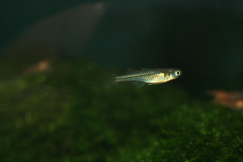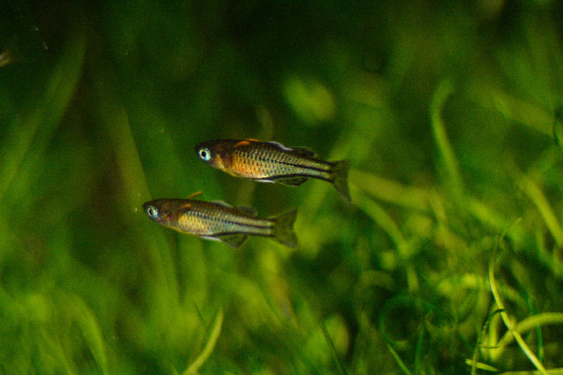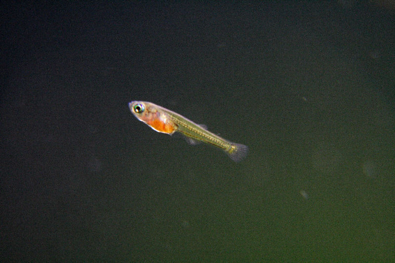 Dopo 86 giorni dalla nascita ho avvistato le prime tre larve generate da questi pesci. In genere per riproduzione si deve intendere la generazione di un nuovo individuo adulto. Il ciclo si è concluso da uovo a uovo. Nel mio caso, considerato che le uova impiegano una decina di giorni per schiudersi, gli individui erano in grado di riprodursi dopo 76 giorni dalla nascita (esperienze riportate nel forum di acquaportal scendono addirittura sotto i 60 giorni). In letteratura viene riportato un inizio dell’età adulta più avanzato (tre mesi). Sarebbe interessante raccogliere altre esperienze in questo senso. A quattro mesi dalla nascita li ho messi in una vasca da 60 litri per la riproduzione ed ho iniziato a lavorare per ottenere una seconda generazione. Nella vasca ho inserito un “batuffolo” di muschio per dare loro un substrato idoneo per la deposizione. Nelle esperienze di riproduzione successive ho accresciuto le larve senza naupli. Sin dai primi giorni ho somministrato mangimi in polvere, ciclo-eeze e, dopo qualche giorno, cisti artemia decorticate. I risultati sono stati ottimi.