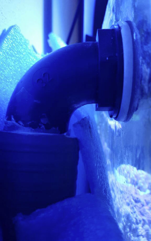 Passiamo per lo scarico…o usate un passa-parete da un pollice quindi foro di 35 mm e poi una curva che scende verso la sump oppure comprate questo.